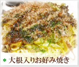 大根入りのお好み焼きです。キャベツを少なめにして大根をたっぷりと