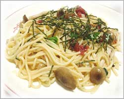 パスタ・残り汁・大葉を加えてさっと炒める。