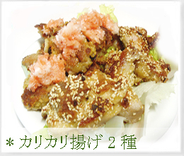 もみじおろし付から揚げとゴマをまぶした蚊ら上げです。