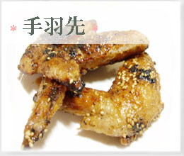 ①手羽先は裏にし中間の骨に切り込みを入れ2本の骨をとる。