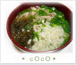 鰹だし汁(1cc半) 好みで七味(適量)好みで卵