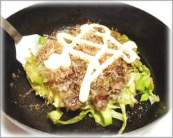 水(70cc)かつお節(適量)ソース・マヨ(たっぷり)