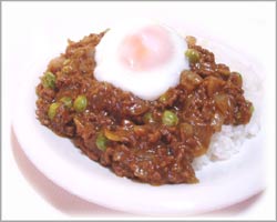 ひき肉(300g)玉ねぎ(1個)えんどう豆(適量)温玉(人数分)