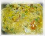 加え、えんどう豆を混ぜ上に黄身をちらす。